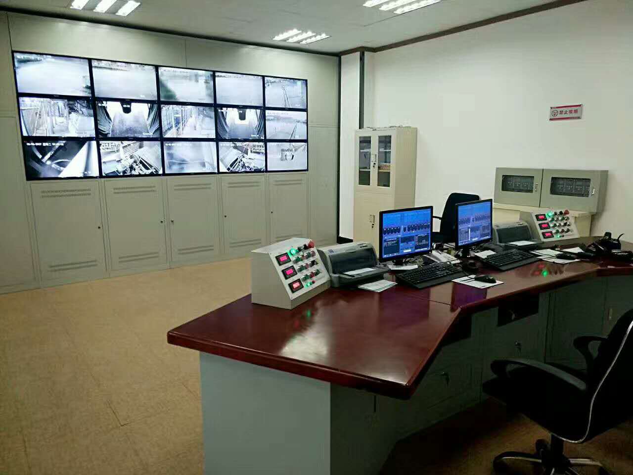 我公司的控制室配備空調(diào)可保證電氣元件經(jīng)久耐用、性能穩(wěn)定持續(xù)可靠,控制系統(tǒng)基本上采用兩種方式,一種是雙機(jī)雙控形式,即系統(tǒng)以兩臺高性能工業(yè)計算機(jī)組成,一臺作為主控生產(chǎn)系統(tǒng),另外一臺作為管理及監(jiān)控系統(tǒng)兼作主控生產(chǎn)機(jī)的備份機(jī),作為主控機(jī)系統(tǒng)具有手動及自動功能,控制機(jī)與管理機(jī)間數(shù)據(jù)共享,控制機(jī)出現(xiàn)故障時可以轉(zhuǎn)換到管理機(jī)工作,限度保證系統(tǒng)的持續(xù)正常運行。另一種采用工業(yè)計算機(jī)加配料控制儀表組成,即配料控制儀表數(shù)據(jù)輸入工業(yè)計算機(jī),通過板卡或PLC可編程序控制器輸出執(zhí)行信號從而保證系統(tǒng)持續(xù)正常運行。在主機(jī)卸料口、配料站等關(guān)鍵部件可以設(shè)置監(jiān)視攝像頭。